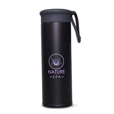 What does the taste of your favorite leaf tea or lemonade with pieces of juicy fruit and an effective promotional gift have in common? COMFORT! Choose the Moon vacuum flask, which by keeping the temperature even longer and having a functional strainer, allows user to uncompromisingly enjoy their favorite drink. Stylish cap in „Soft Touch” version with a functional strap finished with a tasteful clip, will emphasize the prestigious character of the brand. The Moon thermal mug is sold complete with standard unit packaging.