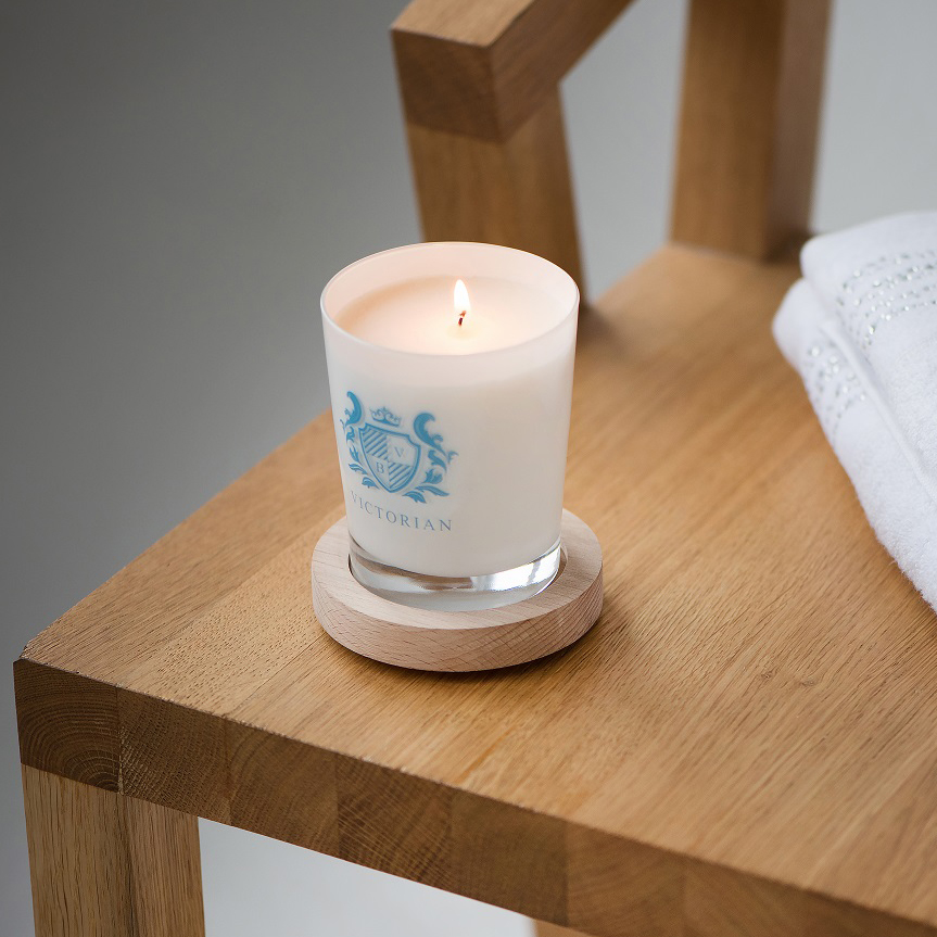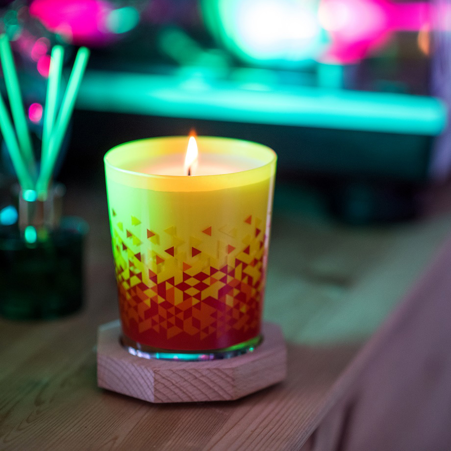 A noble LUMENA candle with harmonious walls, the decoration of which in an extremely subtle, and at the same time effective way will emphasize the position of the promoted brand.