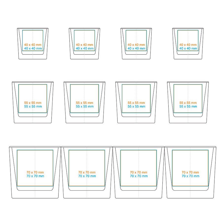 Available adornment technologies for CUBE: *  (110 / 300 / 600 ml)