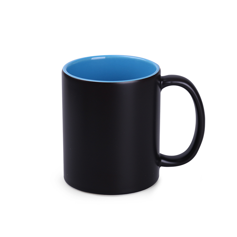 A promotional mug with a popular cylindrical shape and a satin finish. The model is designed for Magic Mug prints—designs that appear only when exposed to heat. The matte exterior surface further conceals the print when the mug is cold.