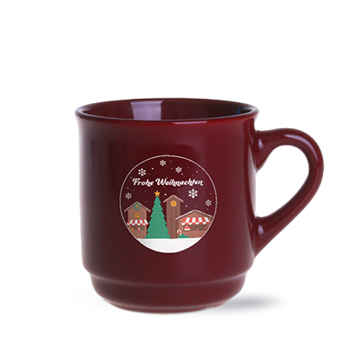 A mug developed for Christmas markets. It has a classic handle shape and a straight body, allowing for stacking.