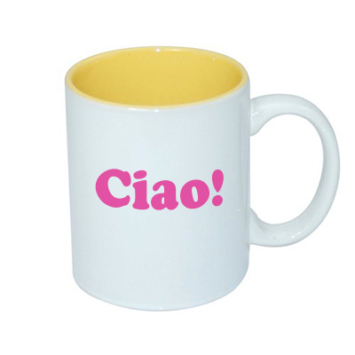 A large, simple, cylindrical mug. Its main advantage is the large print area and the good price. The mug is available in many color versions. This product is from the end of a series and may have pinholes, dots, and variations in glaze shade.